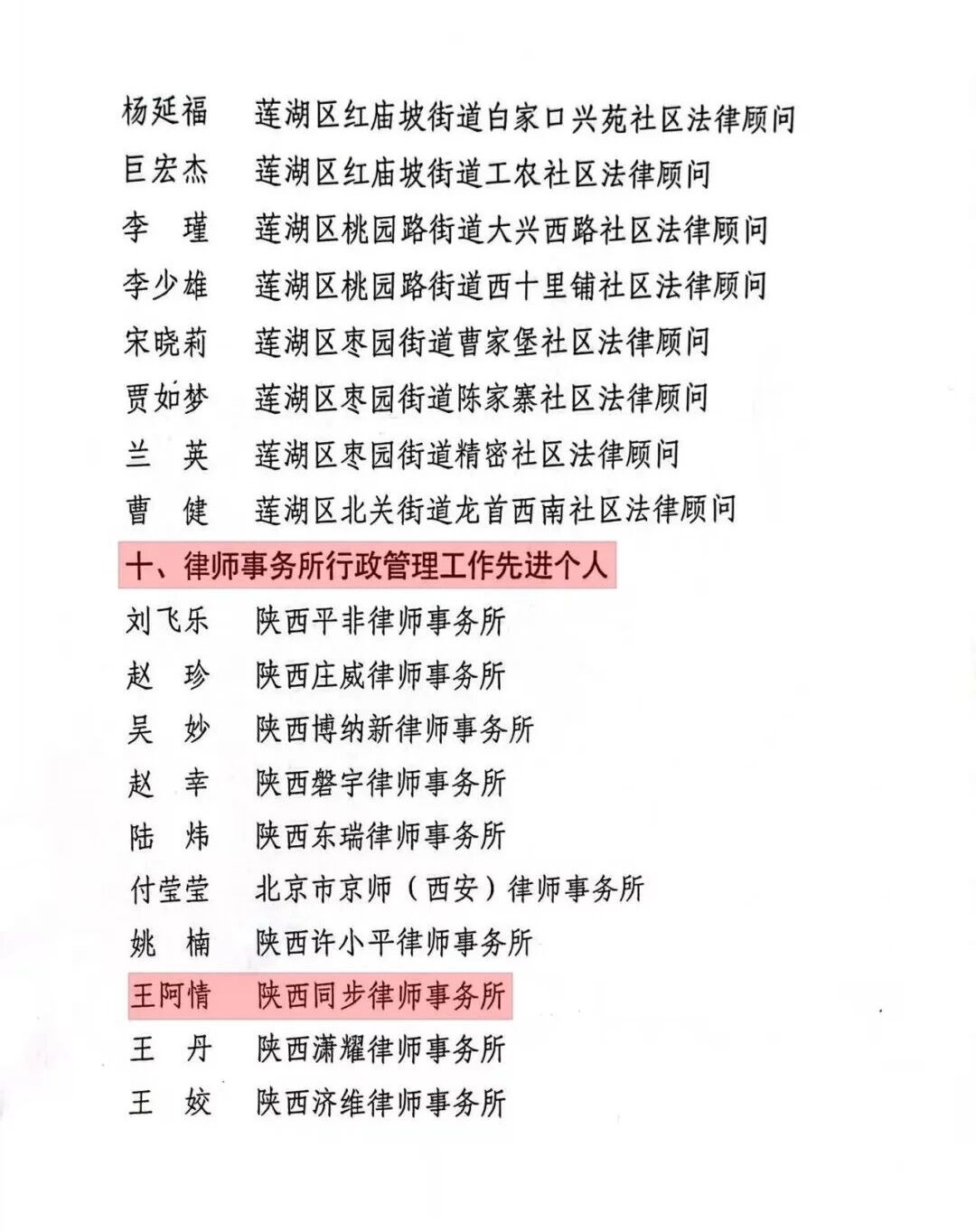 > 我所荣获莲湖区公共法律服务工作先进集体称号,数名律师亦斩获多项个人殊荣