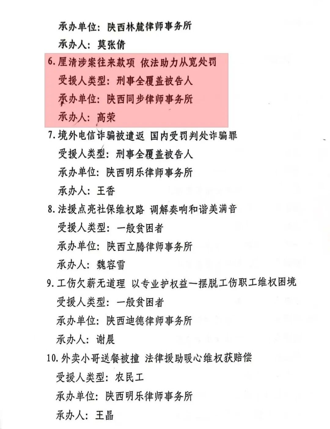 我所高荣律师承办的法律援助案件,入选莲湖区司法局发布的