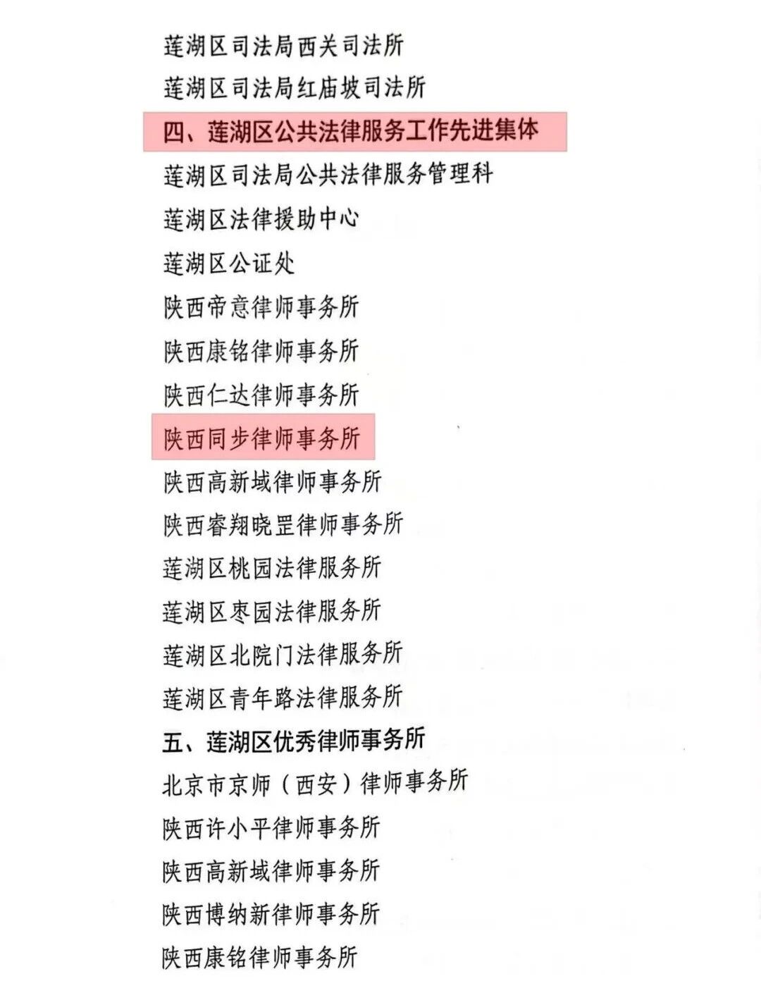 > 我所荣获莲湖区公共法律服务工作先进集体称号,数名律师亦斩获多项个人殊荣