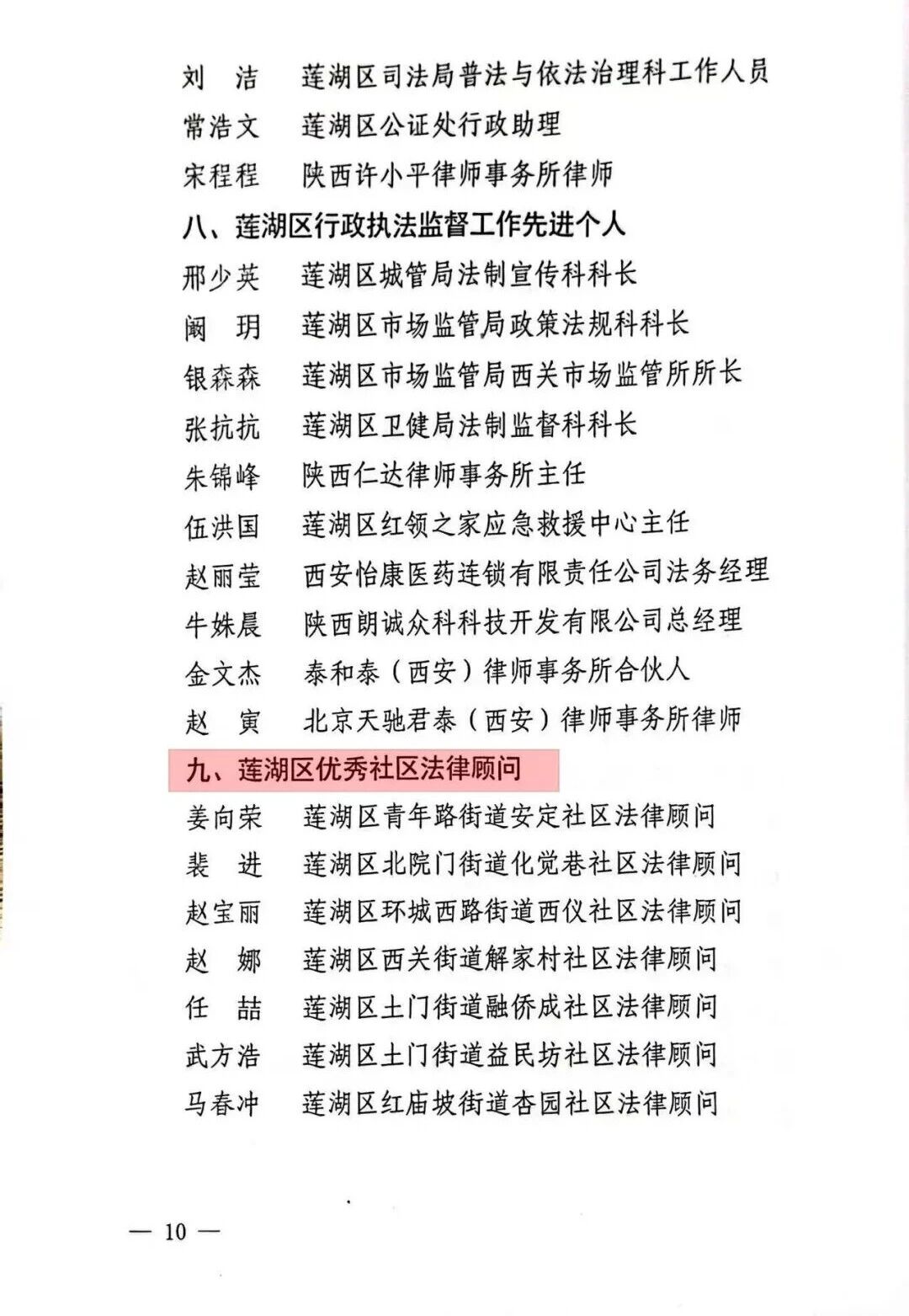 我所荣获莲湖区公共法律服务工作先进集体称号,数名律师亦斩获多项个人殊荣