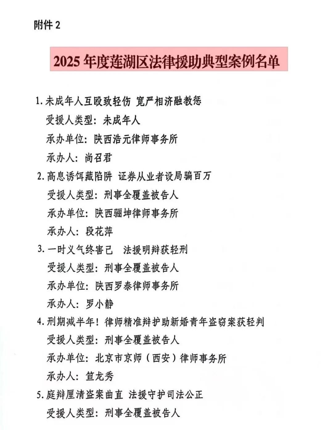 我所高荣律师承办的法律援助案件,入选莲湖区司法局发布的